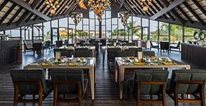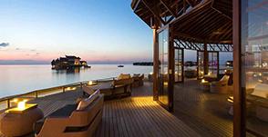 Есть также винотека, коктейль-бар на пляже, бар у бассейна и лаундж над водой.
