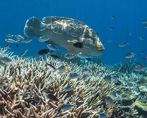 У побережья плавает много рыбок, некоторые туристы занимаются снорклингом прямо у берега. У рифа живут разные рыбы, черепахи, скаты, мурена, осьминог.